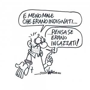 Domani, in Italia come in molti altri Paesi, si svolgeranno le manifestazioni degli Indignati. Si tratta di un movimento che sta assumendo dimensioni globali e che intende dar voce, come dicono i cartelli issati dai manifestanti a Wall Street, a quel 99% della popolazione che sta pagando una crisi che non ha provocato. È importante che le ragioni di questa protesta non siano inquinate e distorte da atti di violenza che servirebbero soltanto a screditare il movimento, offrendo un’ottima scusa a chi non vuole entrare nel merito dei suoi motivi. Che sono molti e molto seri.