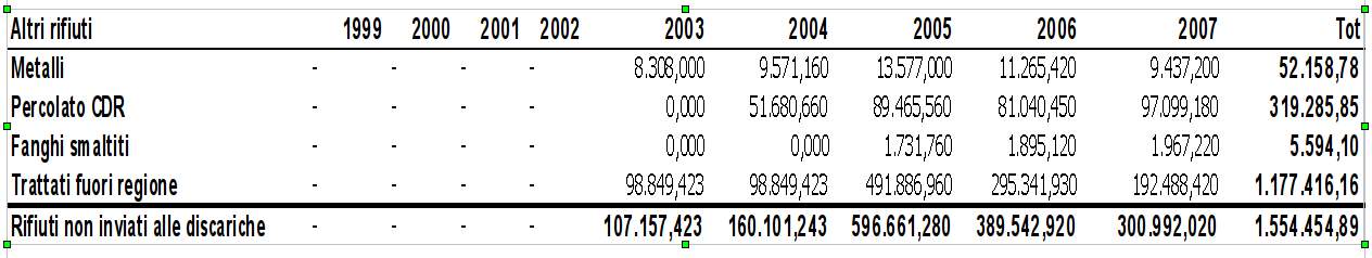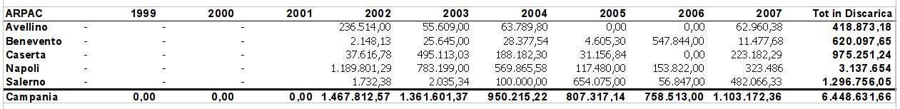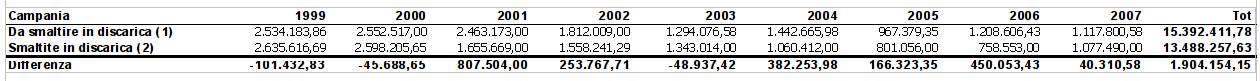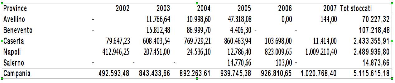 La Tab. 1 è stata ricostruita sulla base dei dati per discarica presenti nei Rapporti ISPRA e mostra che dal 1999 al 2007 sono stati smaltiti in Campania circa 13 milioni e mezzo di tonnellate di rifiuti.