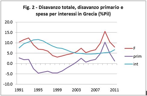 Nel caso della Grecia, questa convergenza si è riflessa, ovviamente, in un calo della spesa per interessi sul debito pubblico: