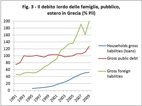 Nel caso della Grecia un po’ di biasimo credo invece lo meriti. Chi non è così ingenuo da non rendersene conto aggiunge però, come il lettore sopra, che la responsabilità sarebbe stata dei privati cittadini e imprenditori greci, che avrebbero “vissuto al di sopra dei propri mezzi” (una frase così bella e rassicurante da pronunciare). Nell’attribuire tutte le colpe ai consumatori greci, si dimenticano due cose: