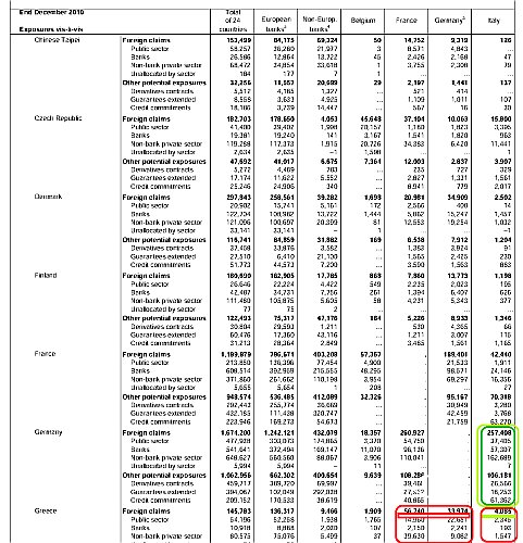 Da brivido davvero la nostra esposizione. Ed è meglio non proseguire dando un'occhiata a Irlanda e Portogallo perchè se no facciamo la figura dei fessi nei confronti di tutti coloro che in questi anni si sono prodigati a elargire allegramente debiti e illusioni in giro per l'Europa.