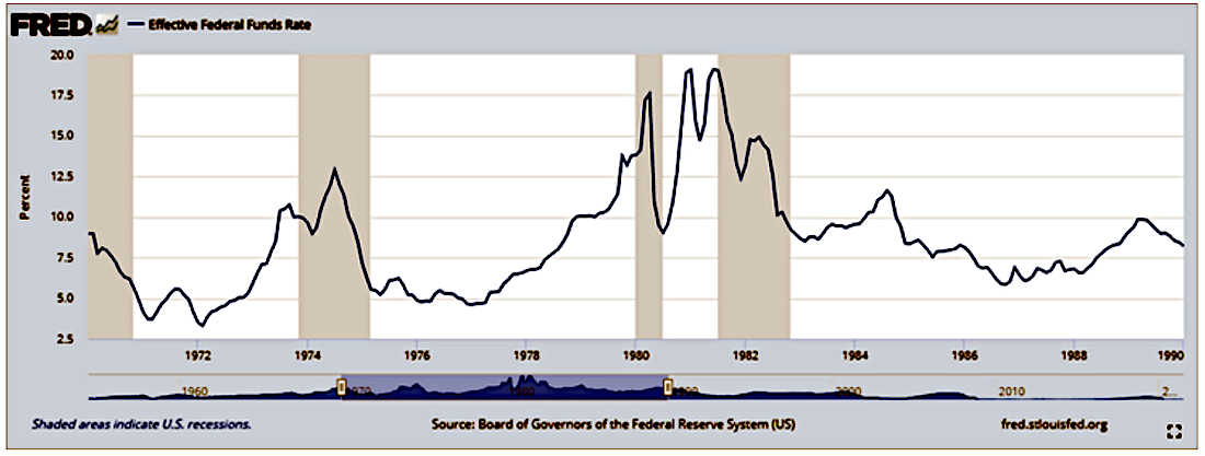 Andamento del tasso effettivo sui Federal Found 1970-1990