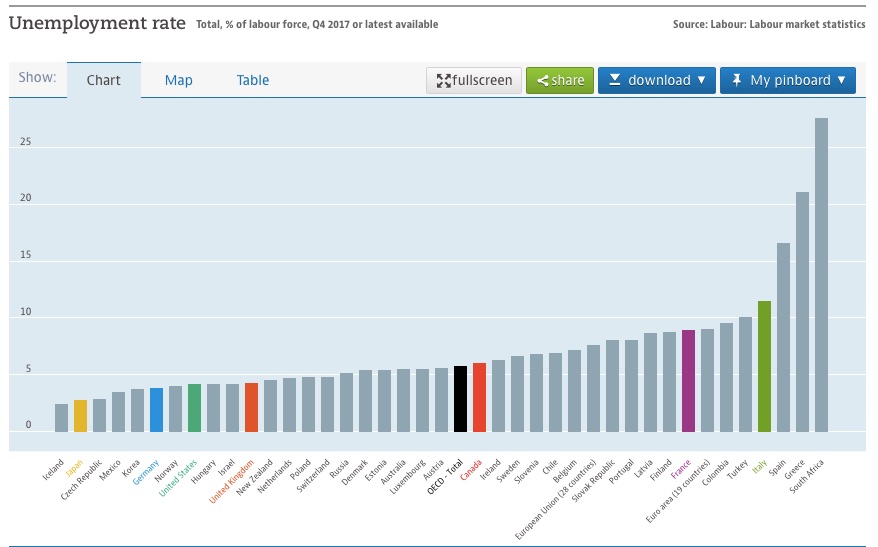 Questi paesi non fanno forse parte dello stesso mondo capitalistico? Non vivono forse le stesse “contraddizioni insanabili”? E allora come si spiegano queste divergenze? O dovremmo credere che tali contraddizioni strutturali riguardano solo certi paesi, tra cui il nostro? In tal caso, Ventura sarebbe in buona compagnia: gli economisti della Commissione europea la pensano esattamente così, tanto che hanno inventato un parametro – quella della disoccupazione strutturale o naturale – secondo cui in qualunque paese in un dato momento esiste un tasso di disoccupazione “naturale” che dipende proprio dalle condizioni “strutturali” di quel paese, che per loro natura non sono modificabili per mezzo di un diverso orientamento delle politiche economiche (il caso vuole che il tasso di disoccupazione naturale sia sempre molto vicino a quello della disoccupazione effettiva; per una critica teorica di questa impostazione si veda qui).