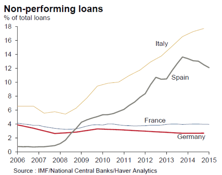 Morale. La crescita esponenziale degli NPL delle banche italiane deriva essenzialmente dalla crisi economica mondiale, fortemente aggravata nel nostro Paese dalle politiche di austerità imposte dell'adesione all'Unione Economica e Monetaria, che ha agito su un contesto economico in cui il credito alle imprese rappresenta la principale attività degli Istituti di credito.