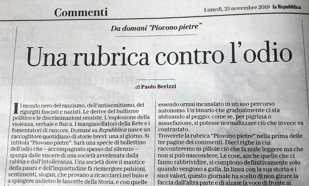 E qui si rincorrono tutti i giornali di autentica estrema destra, quella liberale finanzcapitalista all’arrembaggio del pianeta, ma che si definiscono di sinistra. Li confermano tali amici del giaguaro, accademici e mediatici, così guadagnando credito presso chi ne garantisce protezione, successo e profitto. Guardate cosa s’è inventata la “Repubblica”, col “manifesto” massima fucina di odio per gli “odiatori”. Ingrandite e leggete.