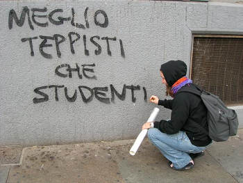 L’unità di classe era, ed è, una risorsa cui tendere sempre. Ma l’unità d’opinione no. Per fare il passo avanti bisognerebbe chiedersi: cosa di quella piazza può continuare ad essere il nostro soggetto di riferimento, e cosa invece dovrà adeguarsi, oppure lasciar perdere e manifestare in altri posti e con altri argomenti? E’ possibile che per tenere dentro il Popolo Viola e la magistratura perdiamo interi pezzi di organizzazioni che portano avanti tutti i giorni le lotte sociali, quelle vere, non quelle d’opinione? Quelle lotte che poi finiscono per essere colpite da quegli stessi magistrati che poi si “indignano” insieme a noi? E’ possibile che per tenere dentro De Magistris si perda il valore e la solidarietà della lotta contro la TAV? Gli specchi su cui si sta arrampicando chi oggi criminalizza gli scontri di sabato, ma cerca di salvare gli scontri in val di Susa, sono sempre più inclinati. Certo, quella conflittualità ha un enorme appoggio popolare assolutamente diverso da ciò che è avvenuto sabato, ma chi porta avanti quelle lotte è lo stesso soggetto che sabato praticava il conflitto. Così come porta avanti le lotte sociali a Roma, a Napoli e altrove. Nessun infiltrato era presente sabato, lo ripetiamo per l’ennesima volta, e nessun soggetto politico estraneo allo spirito di quel corteo. Operare oggi questi distinguo significa solo facilitare la repressione, e, di passaggio, non capirci un cazzo di movimenti e di politica.