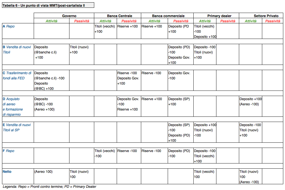 Se Lavoie (2013) ha portato ad un accelerazione del dibattito, intanto Fullwiler (2011) ha aggiunto ulteriori elementi (v. anche Fullwiler, S., S.Kelton, and L.R.Wray (2012). La sua descrizione di «come vengono realmente svolte le operazioni» è simile a quella della Tabella 5 ma con un’importante aggiunta. Parlando del sistema statunitense, gli autori introducono il ruolo dei Primary Dealers (Operatori Primari).